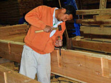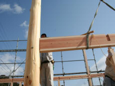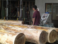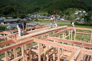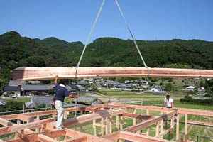 熊野の木を活かす 熊野川流域で育った木材は、 建築材として求められる強度や耐久性を備え、 住宅から非住宅建築まで幅広い用途で活用されています。地域の森林と向き合いながら育てられた木を、 適切な形で建築現場へ届けることが、 木材を活かすことにつながると私たちは考えています。 製材 伐採された原木は、用途や寸法を考慮しながら製材されます。 木の特性を見極め、無理のない加工を行うことで、 建築材として安定した品質を保つことが可能になります。熊野川流域では、 地域の製材所と連携しながら、 流域材としての価値を損なわない加工を行っています。 自然乾燥 必要に応じて、 仕口加工や寸法調整などの手加工を行います。機械加工だけに頼らず、 木の状態を確認しながら加工することで、 建築現場で扱いやすい材となります。細かな調整が求められる場面にも、 柔軟に対応できる体制を整えています。 手加工 必要に応じて、 仕口加工や寸法調整などの手加工を行います。機械加工だけに頼らず、 木の状態を確認しながら加工することで、 建築現場で扱いやすい材となります。細かな調整が求められる場面にも、 柔軟に対応できる体制を整えています。 住宅建築 熊野川流域で育った木材は、 柱や梁などの構造材から、内装材まで、住宅建築のさまざまな場面で活用されています。地域の気候風土の中で育った木を使うことで、 住まいに自然な調湿性や温もりをもたらします。 設計内容や施工条件に応じた木材のご相談にも対応しています。 造園 熊野材は、建築だけでなく、 外構や庭づくりといった造園分野でも利用されています。自然素材ならではの風合いは、 周囲の景観と調和しやすく、 時間の経過とともに味わいが増していきます。 用途や設置環境に配慮しながら、適した木材を提案しています。 土地の販売 熊野川流域木材協同組合では、 森林資源に関わる取り組みの一環として、 土地に関するご相談をお受けする場合があります。森林や土地の特性を踏まえ、 活用目的に応じた検討ができるよう、 関係者と連携しながら対応しています。 詳細については、個別にお問い合わせください。